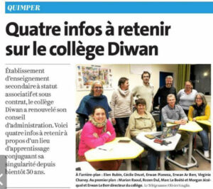 Le collège Diwan Jakez Riou Kemper est un collège associatif, laïc, sous contrat, en immersion en breton.